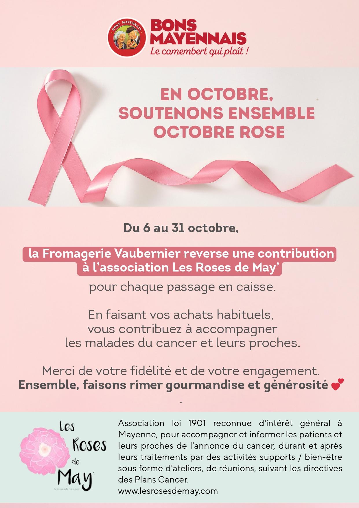Octobre rose de VAUBERNIER: Versement d'un pourcentage sur les ventes de produits laitiers (fromages, lait, beurre ...) au profit des Roses de May en boutique à Martigné-sur-Mayenne pendant le mois d’octobre ?