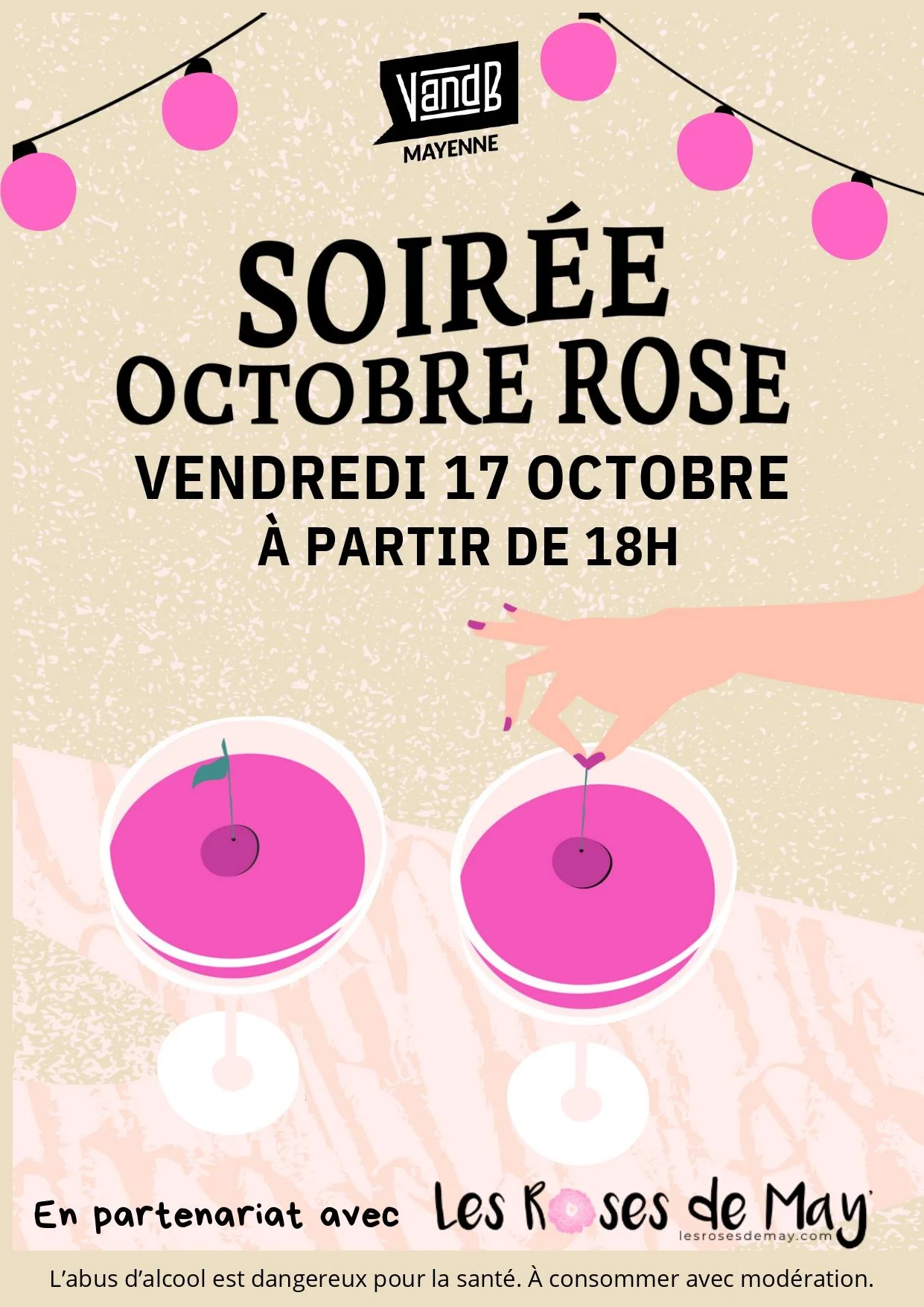 17/10 : Soirée Cocktail Rose en soutien aux Roses de May et remise de chèque au V&B MAYENNE